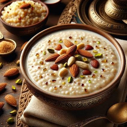Barnyard millets, known for their high fiber content, low glycemic index, and gluten-free nature, transform the classic kheer into a healthful treat that doesn't compromise on taste. This version of kheer marries the nutty flavor of the millet with the creaminess of milk, the sweetness of sugar or jaggery, and the aromatic infusion of cardamom and safforn, making it a truly comforting and satisfying dessert.